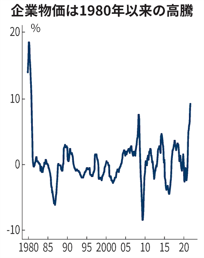 すでに、その兆候は顕著です。日銀は先日、2021年11月の企業物価指数を9.0%上昇と発表しましたが、これは41年ぶりの高騰です。